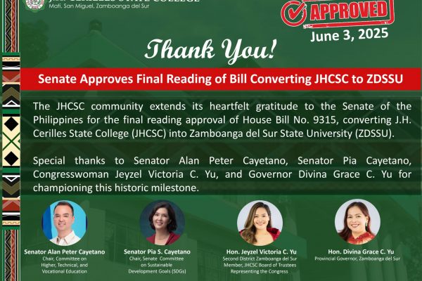 J.H. Cerilles State College Main and Pagadian Campus united in observing the 18-Day Campaign to End Violence Against Women (VAW) on December 4, 2025. The campuses joined the nationwide initiative led by the Philippine Commission on Women, promoting awareness, legal protections, and collective action toward a safer and more empowered society for women.