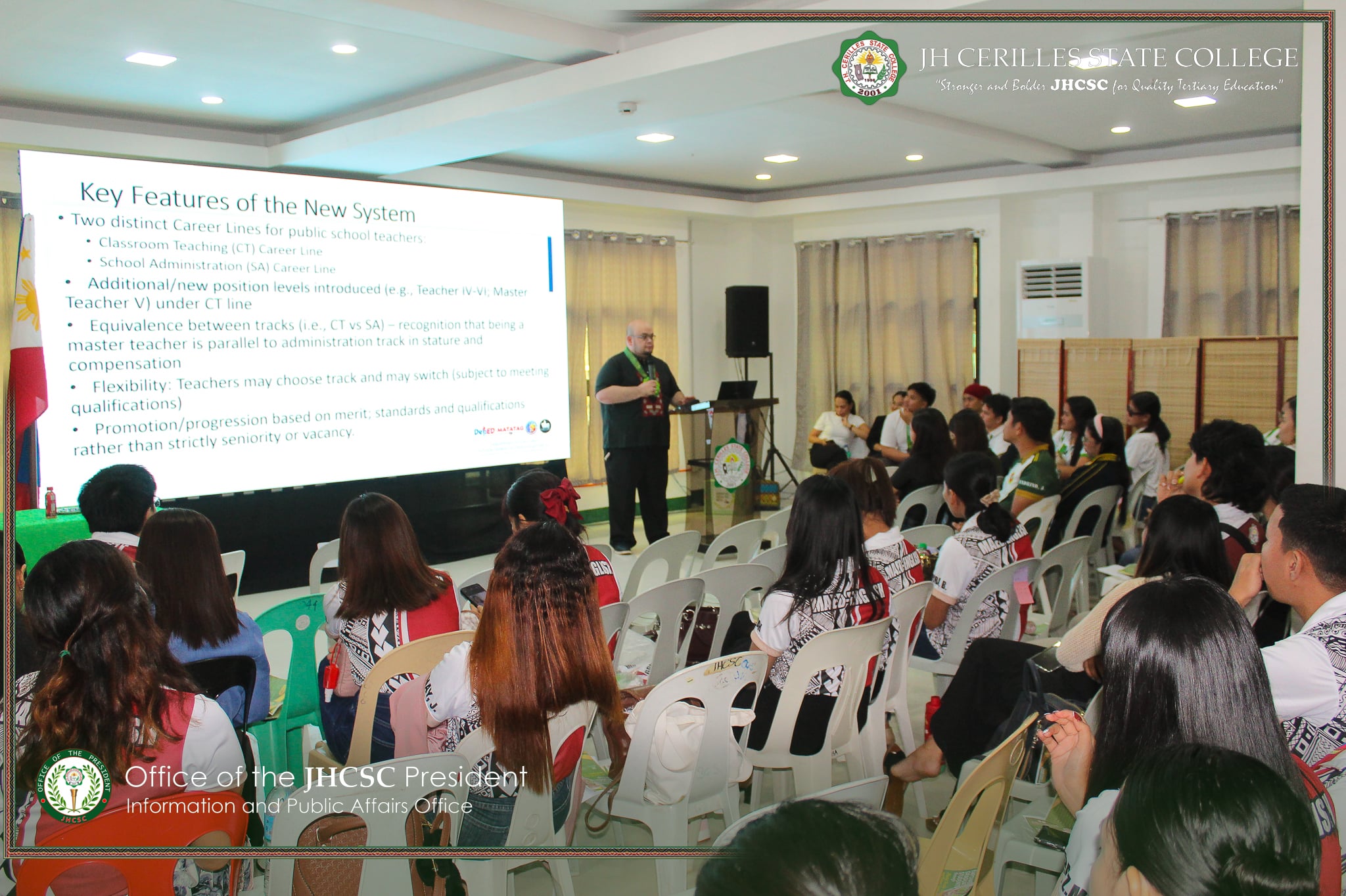 The School of Graduate Studies (SGS) of J.H. Cerilles State College (JHCSC) actively participated in the seminar titled โEmpowering Graduate Students Through Mental Health Awareness and Career Developmentโ held on October 25, 2025, at the JHCSC HRM Hostel. The event was initiated by the Guidance and Counseling Office, led by Ms. Catherine D. Cabal, RGC, RPM, with the support of SGS Dean and Campus Director, Dr. Patricia D. Bahian. The Student Peer Facilitators (SPF) also played an essential role in organizing and preparing the day-long activity.