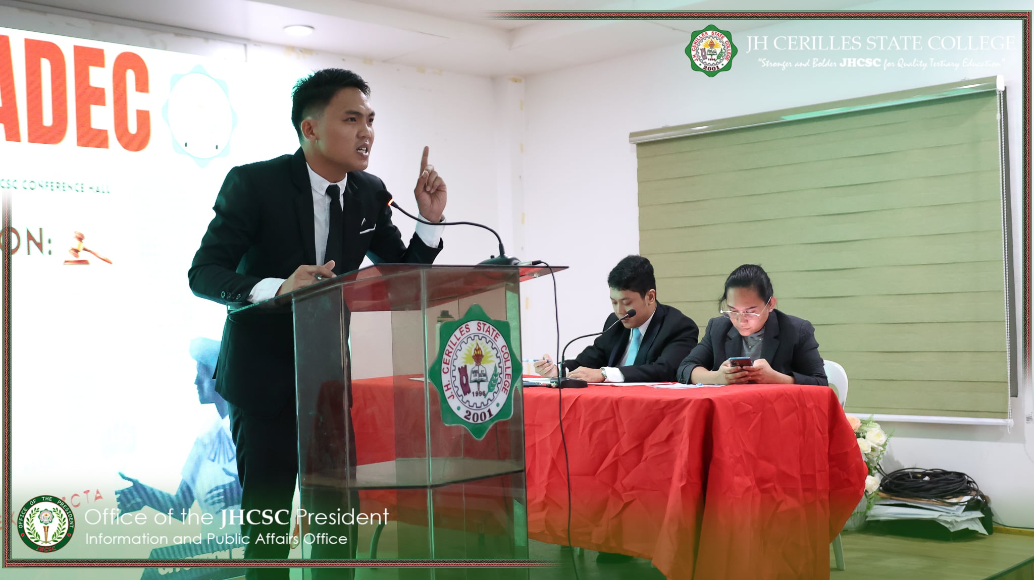 The School of Law (SOL) of J.H. Cerilles State College (JHCSC) officially launched the JHCSC Alliance of Mooting and Debating Circle (JAMADEC) on November 22, 2025, at the Conference Room, 3rd Floor, I.T. Building, Pagadian Extension Campus. The program, attended by Pagadian Campus Director Dr. Patricia D. Bahian, faculty, and students from all years of the five-year law program, marks a significant milestone in the schoolโs mission to strengthen legal reasoning, advocacy, and public speaking skills. JAMADEC is the realization of the vision of the Dean of the School of Law, Atty. Romylyn O. Regidor, who was further conceptualized with the support of the Supreme Student Council, led by Engr. Princess Eve M. Abaniel-Quiamno.