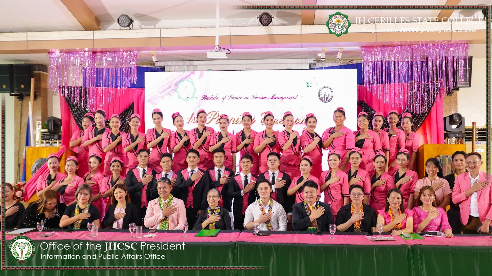 The Bachelor of Science in Tourism Management (BSTM) Batch “Aninag” of J.H. Cerilles State College (JHCSC) held its first-ever pinning ceremony on January 28, 2026. The event symbolized the students’ readiness to enter professional practice in the tourism industry. It was led by BSTM Program Chair Prof. Julie R. Cabalog, under the guidance of the Dean of the School of Business and Management, Dr. Julito V. Mandac, Jr., with the support of JHCSC President Dr. Edgardo H. Rosales, whom the Pagadian Extension Campus Director, Dr. Patricia D. J. Bahian, represented.