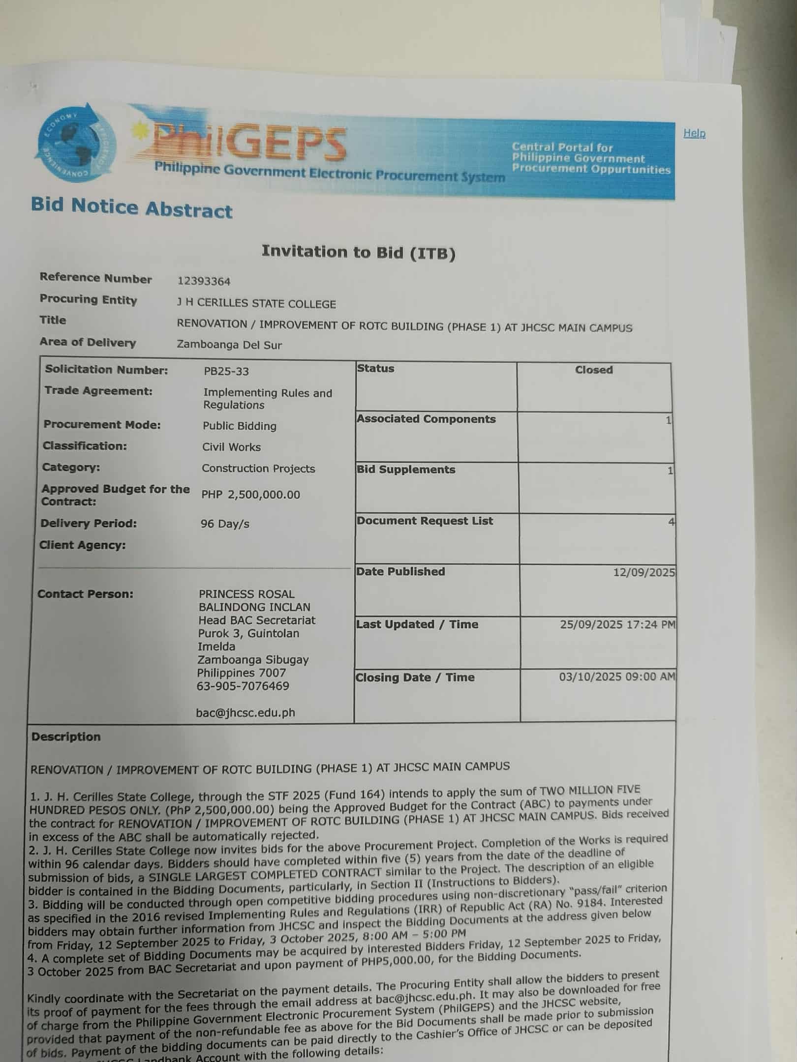 RENOVATION / IMPROVEMENT OF ROTC BUILDING (PHASE 1) AT JHCSC MAIN CAMPUS